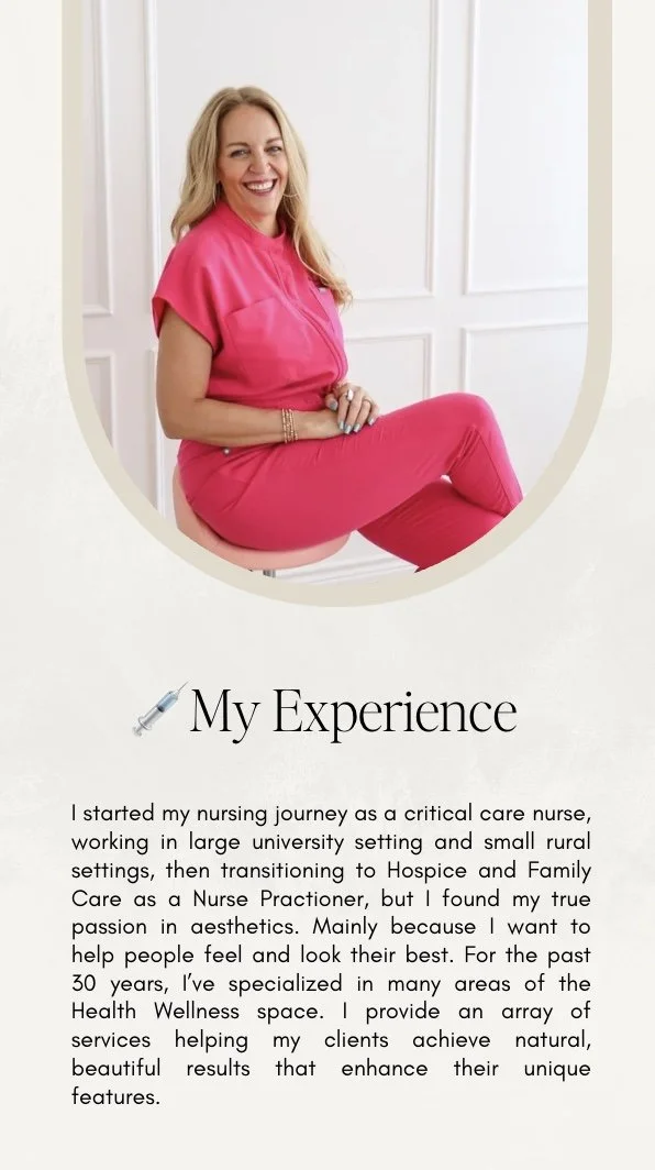 Juliana Gates, Board-Certified, Family Nurse Practitioner, is the Owner and Lead Injector She brings with her over 30 years of healthcare experience in a vast array of subspecialties and at multiple levels including Executive VP of a hospital. This experience and knowledge base, coupled with the enormous amount of empathy and understanding that she exudes, uniquely separates Juliana from the majority of her colleagues. Her interests of focus include generalized health and wellness, improved nutrition, total body rejuvenation and aesthetics all while helping you age gracefully….
